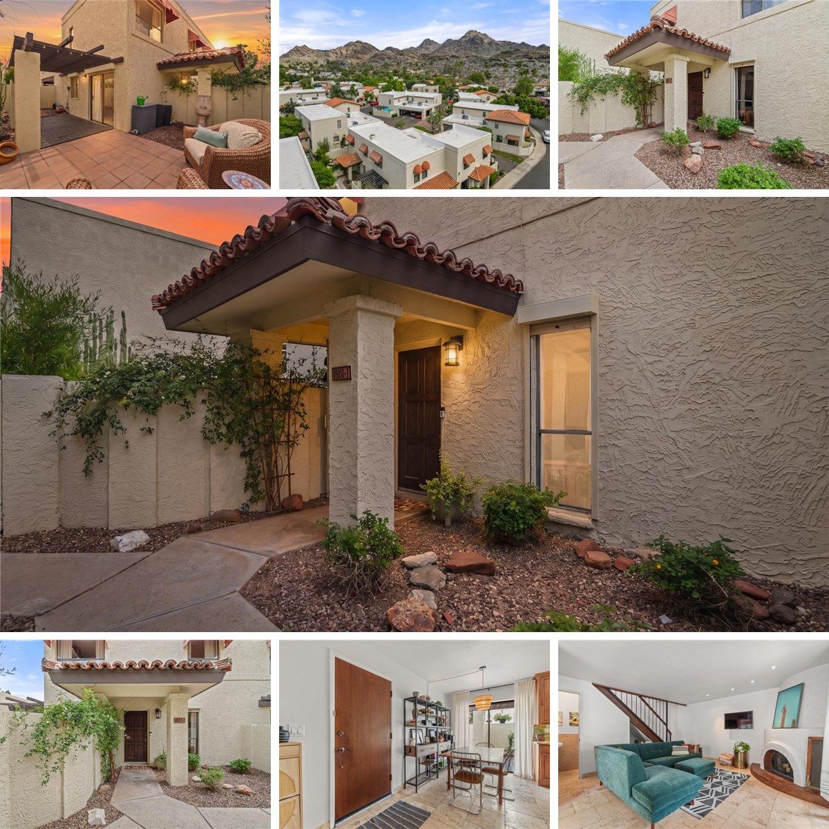 Location, location, location! This lock & leave unit has the best to offer for those who want a low maintenance home, access to the Pointe Hilton resort amenities including the pool, spa, & gym, plus nearby employment, restaurants and enterainment. This is end-unit is nestled beside the resort at the base of Piestewa Peak. You will enjoy the travertine flooring, updated kitchen with granite counter tops and stainless steel appliances, beehive fireplace, and cozy backyard patio. Upstairs are two spacious bedrooms (double closets in the primary) & a tile surround shower. The window roller shades offer additional privacy or security for part-time residence. HOA includes water, cable, trash, exterior building and roof maintenance. New HVAC in 2025.
