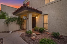 Location, location, location! This lock & leave unit has the best to offer for those who want a low maintenance home, access to the Pointe Hilton resort amenities including the pool, spa, & gym, plus nearby employment, restaurants and enterainment. This is end-unit is nestled beside the resort at the base of Piestewa Peak. You will enjoy the travertine flooring, updated kitchen with granite counter tops and stainless steel appliances, beehive fireplace, and cozy backyard patio. Upstairs are two spacious bedrooms (double closets in the primary) & a tile surround shower. The window roller shades offer additional privacy or security for part-time residence. HOA includes water, cable, trash, exterior building and roof maintenance. New HVAC in 2025.