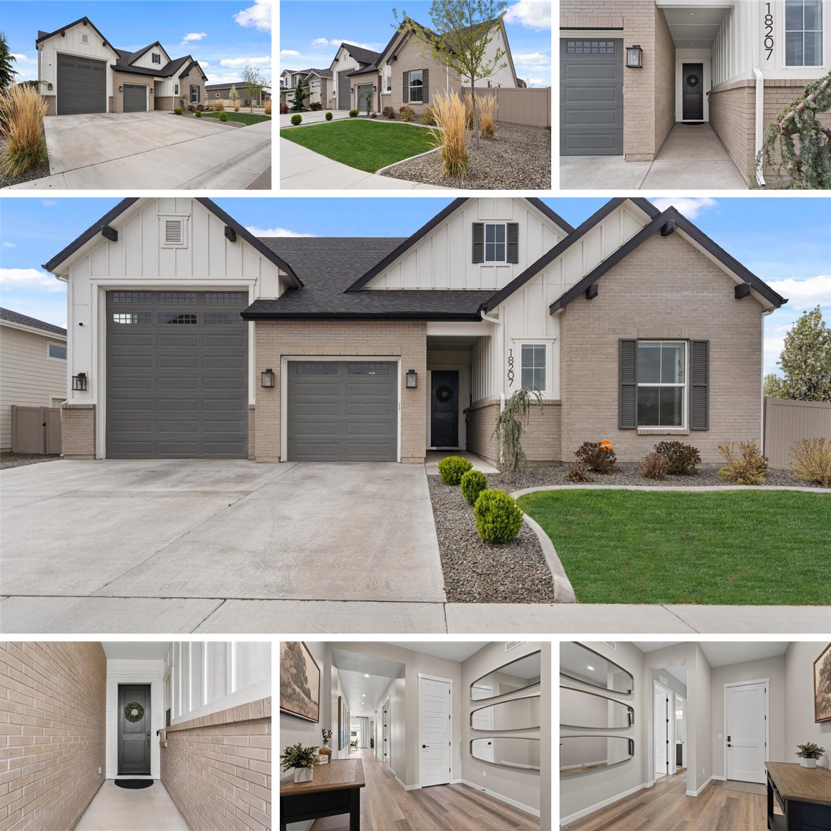 $15k PRICE IMPROVEMENT! This fully upgraded former model home has it all, and it's move-in ready! The standout feature is the attached finished 40 foot RV garage with an additional tandem 2-car bay and finished epoxy floor, providing room for all your toys! Sitting on a beautiful corner lot, this home features fully finished landscaping front and rear with concrete curbing and auto sprinklers. The backyard has been upgraded with evergreen trees and a MagnaTrack Premium remote control operated privacy shade on a covered patio with a triple pane sliding door, creating a perfect space to entertain! The model home features speak for themselves - inside you'll notice 10 foot ceilings, an open great room with gas fireplace, quartz countertops, large kitchen island, and a walk-in pantry. The primary suite features a step-in tile shower, stand alone soaker tub, double vanity with quartz countertop, and large walk-in closet. A spacious office with French doors, two additional bedrooms, and two additional bathrooms round out the living space. Other features include custom tile work throughout the home, tankless water heater, central A/C, and HERS-rated energy efficiency. Nestled in the desirable Hartland subdivision with a community park and pickleball court. Only 2.5 miles to I-84 makes it a convenient commute to Boise or Caldwell. Centrally located only minutes from Meridian, Star, and Middleton as well.