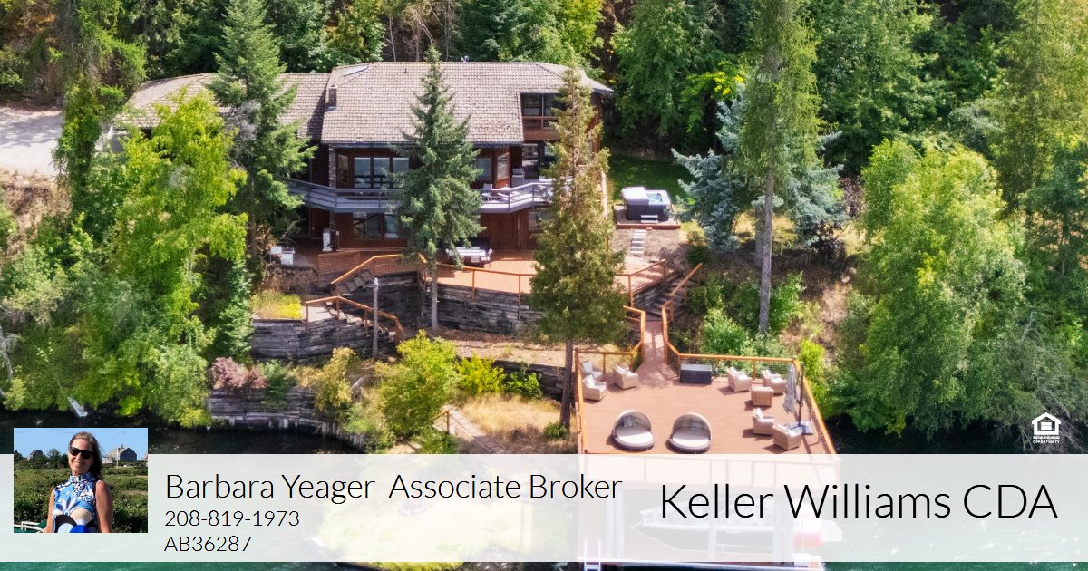 INCOMPARABLE RARE DOCK! Discover the ultimate retreat on the Spokane River—a stunning riverfront property! The private 2-boat slip dock with a boat lift has an expansive upper sun deck, ideal for soaking in panoramic views plus breathtaking sunrises and sunsets. Designed for effortless entertaining and creating lifelong memories, it features multiple decks overlooking the water. The deep-water frontage is perfect for boating, swimming, or relaxing at the water's edge, with thrill-seekers able to dive or jump from the upper deck and easy ladder access from the dock or shoreline yard ensuring fun for all ages. Inside, this modern luxury cabin offers 5 spacious bedrooms and 3.5 baths, including a generous master en suite with a charming Juliet balcony overlooking the river. Enjoy stunning water views from nearly every room, including the large family room. Ample closets and storage throughout.