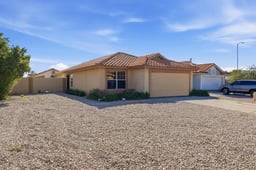 Welcome home to this single-level Mesa gem with no HOA and space to truly make it your own. Sitting on a large lot, the backyard is ready for entertaining, hobbies, or future plans, with an extended cement pad, covered patio, storage shed, and fenced area. The side yard offers room for a double gate, adding flexibility for toys or trailers. Inside, enjoy an open floor plan with a spacious great room, kitchen, and dining nook. The home features 3 bedrooms, with a split primary suite for added privacy, plus new carpet and fresh paint in the bedrooms, and easy to care for vinyl flooring. The owned solar system helps keep energy costs down, making this home as practical as it is inviting. Refrigerator, washer & dryer included.