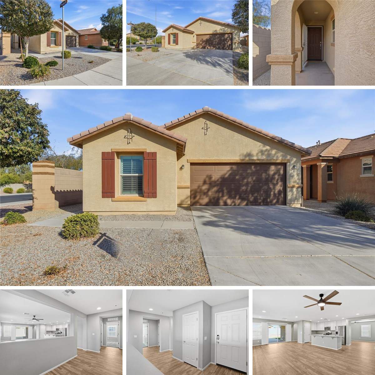 Pride of ownership shines in this move-in ready 3 bedroom, 2 bath home with a dedicated office. Enjoy an open, bright floorplan accented by plantation shutters throughout. The thoughtfully designed kitchen features stainless steel appliances, an eat-at bar, and a spacious walk-in pantry. The primary suite offers dual sinks with a raised vanity. Step outside to a backyard ideal for play or entertaining, complete with pavers and low-maintenance synthetic grass. The garage includes a 240-volt EV charging station. Washer and dryer convey—this home is ready to welcome you!