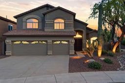 Experience elevated living in this stunning 4-bedroom plus den residence featuring a 3-car garage with newly finished epoxy floors and refined desert curb appeal. Inside, soaring vaulted ceilings, abundant natural light, fresh designer paint, plush new carpeting, and elegant can lighting create a sophisticated ambiance. The gourmet kitchen showcases granite countertops, beautifully refinished white shaker cabinetry, designer backsplash, walk-in pantry, center island, and premium new appliances, including a double oven with air fryer, cooktop, and microwave. A new upgraded self-adhesive double-ply roof and leased solar with upgraded critter guards enhance efficiency and peace of mind. Move-in ready and thoughtfully curated, this home blends luxury, comfort, and effortless Arizona living.