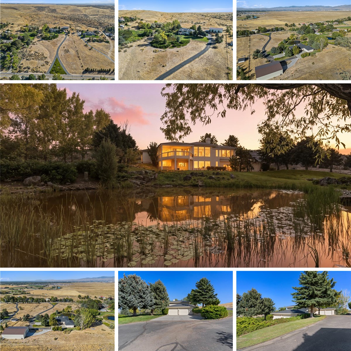 Enjoy breathtaking views of the Boise Valley from this rare 4.9-acre estate property, ideally located in an exclusive subdivision bordering the Birds of Prey conservation area. This custom-built home offers exceptional space and flexibility for generational living, with two full levels—each featuring its own kitchen. Quality finishes include mahogany wood floors, energy-efficient Pella windows, and fresh interior paint throughout. A brand-new roof adds peace of mind and long-term value. The main-level master suite showcases expansive valley views and a private ensuite bath, while the wraparound deck provides the perfect setting to take in the panoramic scenery and wildlife. Additional features include a large pond, dedicated workout/bonus room (not included in square footage), two separate two-car garages (one on each level), and a massive 40x60 insulated shop with RV doors and 220 power. A unique opportunity offering space, privacy and versatility just minutes from town!